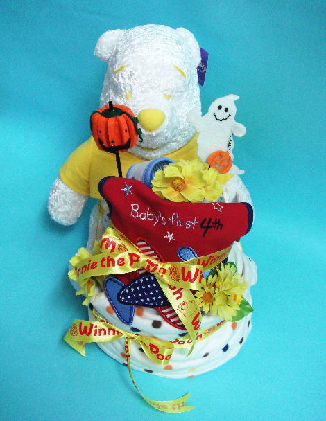 またまた作っちゃいましたネズミ年生まれが多いこと!『おむつケーキ』第3弾食べられませんので・・・・あしからず。。。今回は、日本舞踊の後輩がめでたく出産です実は、産まれるまで性別が不確定で・・・・。いざ産まれてみると、男の子でしたぁ今回のチョイスも、私が実際に使って良かった物ですお馴染み、カーターズcarter'sのビブ。このビブは、中に防水シートが入っているので、よだれが洋服まで染み込まないのですそれから、冬に向けてフリース素材のカバーオール(足つき)お洋服も、すっかりカーターズにはまっとります。なんてったって、男の子でも可愛いんですものっカラフルな水玉模様に、なんと足にはクマちゃんがいるのですそれから、カーターズのボディスーツ、デザイン生地も何回お洗濯してもかなり丈夫ですあとは・・・同じものなら、少しでもリーズナブルにお買い物できるお店を探すのみ続きましては・・・・ハンドタオルこれまたよだれ対策ではありますが、トゥシェのタオルは日本製で、何度洗っても結構しっかりしています。お出かけに持ち歩くのにも、ちょっとお洒落な方が嬉しいしこれまた、価格もにやさしいのでリピしてますそれから、今回出産したMちゃんは、日本舞踊の名取披露の際に、オリジナルの手ぬぐいを作っていたんです。それを利用して、産着を作成しましたでっ、それも中に詰め込んであります産着は後日upしまぁす<おむつケーキ:材料>紙おむつ 12枚 カーターズカバーオール 1枚⇒ 即発送!のMenowaボディスーツ 2枚ビブ 2枚 ⇒ カーターズならおしゃママガーゼタオル 2枚 ⇒ 日本製で柄もおしゃれ♪トゥシェ製ぬいぐるみ 1体 飾り用ブーケ 3個 リボン 2本 厚紙 1枚 ゴム 12本ハロウィン飾り 2本今回は、デラックスバージョンで、1段目が紙おむつ。2段目に産着2着、ハンドタオル2着、ビブ2枚を乗せて作りました。10月ということで、ハロウィンをちょっとだけ意識したデコレーションですお店の対応がso nice!Menowaとってもお買得♪おしゃママトゥシェのハンドタオル♪