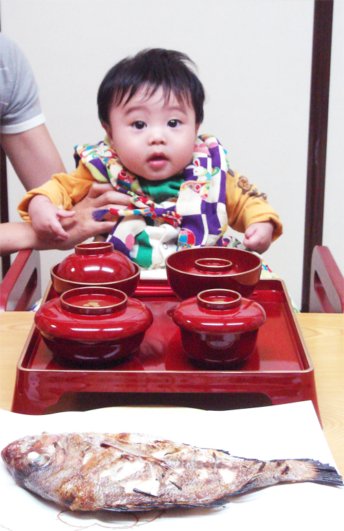 食べ物に、一生困らないように・・・と願いを込めて行う『お食い初め』の儀式は、一般的に生後100日で行うそうです。が・・・・、100日というと、8月3日がその日にあたったのだけど・・・・バタバタと忙しさにかまけているうちに、過ぎてしまい、しかも、代役ハプニングやもう一つ会があったりしたもんだから、さらにずずずずーーーーっと伸びてしまって、5ヶ月の本日、『お食い初め』とあいなりましたなんとも、趣味悪い服装になっておりますが・・・お稽古終わって、夜9時過ぎにこんなことしてますんで・・・あしからずちなみにちゃんちゃんこは、私、作製しましたわっ近所のお魚屋さんで鯛&お餅屋さんでお赤飯を取り揃えましたっ(厳密に言うと、じぃじぃが揃えたのでありますが・・・)本日、本気モードでハイハイに挑戦微妙に、ズリ這い成功か本人、超真面目です何はともあれ、健康に成長してほしいと願うのでありました。ネズミ年生まれというので・・・ミッキーだぁ~とぉ、ディズニー好きの私の血が騒ぎまして・・・買ってしまいましたお食い初めセットお正月にも使えそう・・いやいや、使いますさりげなくミッキーマークが入っていて、上品でした。送料無料にするために・・ついつい、、、お重箱、まで購入してしまいました想像していたものより、サイズは小さかったのですが、家族でピクニックには、ちょうど良い大きさです。来年のお花見には、詰め込んで行くぞー■一番お安かったみよし屋さん♪■ついでに買ってしまったお重です^^