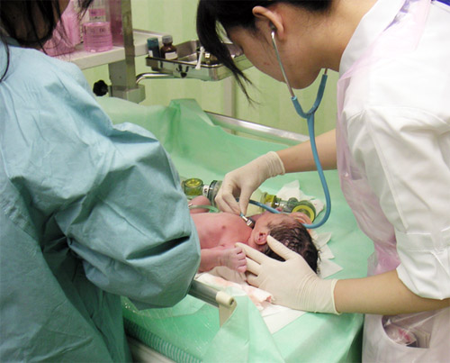 元気元気な産声のベビィ出産後の処置も終わり、陣痛室でベビにご対面できることを待っていました。ダーは、「ベビの脈がちょっと速いので落ち着いたら連れてきます。」と看護師さんから言われたと言っていました。私は、のん気にもたいしたことはないだろう。もうちょっとで、ベビに会えるさぁ~ぐらいに思っていたのです。ところが・・・・・なかなかベビはやってこない・・・・そして・・・・看護師さん「ベビちゃんの脈が速いのがなかなか治まらないので、これから小児科のほうに連れて行くのですが、お会いになりますか?」私&ダー&母「はい。」で・・・・・・ベビとともに、産科の先生2名&看護師さん2名となんだか物々しい感じでやってきた。ベビは、ぐったりとして、半目状態。あの元気な産声とは打って変わって、瀕死とも思えるような姿だったのです。そして、Dr「脈が速くなって治まらず、苦しい状態です。何ともいえませんが、まず小児科の先生に診てもらうために連れて行きます。・・・」私「・・・・・・・・・・・・・・・よろしくお願いします。」ベビのなんとも苦しそうな表情に、まさかこのままお別れになるなんてことはないよねと、頭を過ぎりました。無事に生まれたと思っていただけに、「どうなるかわからない。」というこの状況に呆然としていました。母は、出産後間もない私に、Drがベビの状態を伝えたことにびっくりしていましたが、私ははっきりとDrの口から、今、ベビがどういう状態なのか聞くことができたことは本当に良かったと思いました。母は口では「大丈夫」と言っていたものの・・・母自信が、出産直後に我が子を亡くしている経験もあることから、相当ショックを受けていたと思います。実際、その日の稽古は、完全に上の空だったと後からお弟子さんを通して聞きました病名もわからず、生まれて間もない小さな体に起こっている異変。私とダーは、ここが大学病院で最善を尽くしてくれることは間違いないだろうから・・・・ベビの生命力を信じるしかない。と自身に言い聞かせて、ベビの容態の知らせを待つのでした。さすがに・・・せっかく出してもらった朝食は、この状況では喉を通りませんでした。陣痛室から、歩いて病室まで行き。どんよりとした、何ともいえない気持ちで、「知らせ」を待ちました。看護師さん「ベビちゃんの状態は、落ち着きましたよ。午後にでも、小児科の先生からお話があると思いますので。」ふぅ~~~。無事だった『良かった』という言葉では表せないほど、ホッとしましたよ。しかし・・・・いったい、ベビに何が起きているものか・・・・。小児科のDrから呼び出しがかかるまでの間、ベビの入院手続きもしなければいけないし・・ということで、ダーには、出生届の手続きやらなんやらで、外出してもらいました。そこで、名前が決定妊娠中からいいなぁ~と思っている名前があって、ただし・・・姓名判断を見ると、どうも苗字とのバランスが悪く、運勢最悪で、その中でも異なる流派の姓名判断で、そんなに悪くないじゃないという漢字と希望通りの読みがあったので、最終候補に上げていたのです。とは言え、顔を見てからじゃないとなんともぉ~と思っていました。ベビとご対面してみて、これなら、予定通りの名前でと言うことで決まりました午後になってから、ベビの容態も安定していてDrから説明も聞けると言うことで、初めてNICUへ行きました。予防衣を着て、手を綺麗に洗って・・・NICUの中に入ります。数多くの保育器が並ぶ中、我が家のベビは、保育器ではなくベッドに寝ていました。もちろん心電図やら、点滴でたくさん繋がれて。。。眠らせるお薬で、スヤスヤと眠っていました。生まれたばかりの小さな体で、なんとも痛ましい感じではありましたが、危険な状態を脱したことがどんなにありがたいかと胸をなでおろしました。Drからは、●脈が速くなる状態は、NICUに来て注射の針をさしたところ自然に治まったこと。●もしかしたらまた同じ状態「脈が速くなり治まらなくなる」が来るかもしれないので、しばらくNICUで様子を見ること。●心臓にわずかではあるが、小さな穴があいていることが見つかったこと。●循環器のDrとも連携して様子を見ていくこと。などの説明を受けました。この時点では、まだ、病名を告げられず・・・。たまたま、起きたことかもしれないし、そうでないかもしれないし・・・・。ひとまず、NICUで様子を見てもらうことになったのです。NICUでは、面会時間が決まっているので、時間の許される限りベビの側にいようと決めたのでした。⇒生まれた直後のベビ♪カンガルーケアとまではいかなかったのですが…初抱っこです!