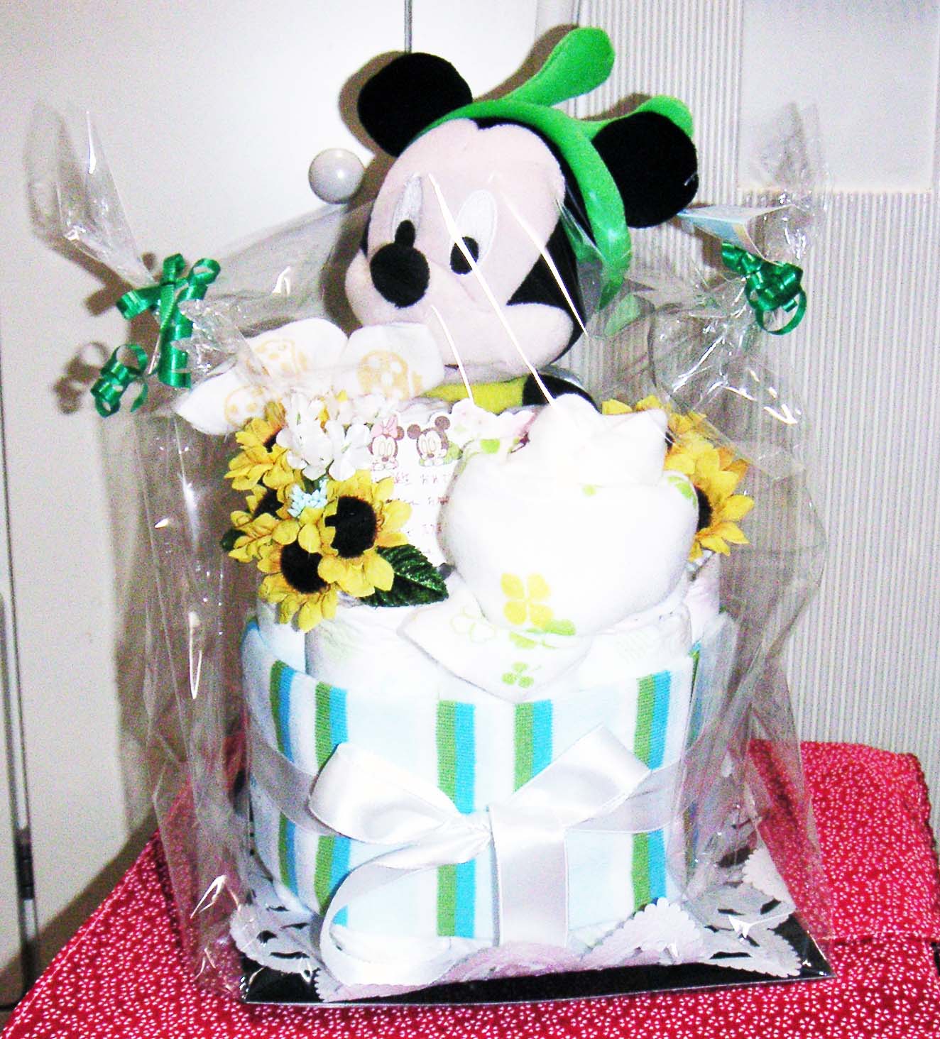 親友の妹さんがめでたく出産されたので、お祝いを兼ねてお邪魔してきました出産を経験して以来、他人の子供もとってもとっても愛おしく感じられるようになった気がします。それまでも、子供好きなほうだと思っていたんだけどね。今では、生まれた~と聞けば、思わず飛んでいきたくなる心境母になるって・・・色々な物が私の中でも変わっていくのですねぇさて、出産祝いのプレゼントに持って行ったのが『おむつケーキDiaper Cake』土台が、紙おむつでできております。そして、紙おむつをぐるっと一回りしているのがアメリカ産まれのベビーレッグス夏場は、クーラー対策にもなるし、4歳までオールシーズン使えるのがとってもよいですわなんといってもデザインが素敵色々あって、迷っちゃうのよねぇ~。それから、何枚あっても助かる“ガーゼタオル”2枚をお花とパイナップル型にデコレーションして中身はたいしたことないのだけれど・・・もらったら、ちょっと嬉しい感じの、“おむつケーキ”を自作してみちゃいました作り方はとっても簡単!はまりそうです<おむつケーキ:材料>紙おむつ 12枚ベビーレッグス 1組 ⇒ メール便送料無料★お洗濯屋さんガーゼタオル 2枚 ⇒ 日本製で柄もおしゃれ♪トゥシェ製ぬいぐるみ 1体飾り用ブーケ 2個リボン 2本厚紙 1枚ケーキ台紙 1枚ゴム 12本★ベビーレッグス★トゥシェのハンドタオル♪