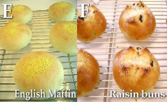 1ヶ月ぶりのABCクッキングスタジオ。出かける前にパパとケンカになって嫌な気分で家を出たけれど教室に着いたら気分も軽くなってリフレッシュ♪今日は、E:イングリッシュマフィン と F:フルーツ(レーズンパン)の2種類のお勉強。イングリッシュマフィンは、コーンミール入りのリーン生地で作る食事パンです。専用の型に入れ、天板で押さえながら発酵させることで、平たいパンになります。ほとんど味のないパンなので、間にハムや目玉焼き、生野菜をはさんで食べます。レーズンパンは、ラム酒漬けレーズンがたっぷり、バターと卵もたっぷり入ったリッチ生地で焼きます。8割こねあがったら、レーズンを入れて、軽く揉むように混ぜ込みます。仕上げは、塗り玉⇒十文字のクープ⇒白ざらめ糖を振りかけます。やっぱり焼きたては美味しいんだよなぁ~(* ̄。 ̄*)次回は10月初めに受講予定。初級最後のG(抹茶パン)と中級初回のH(胚芽パン)。楽しみだわ~♪♪♪ ヾ(≧∇≦*)〃ヾ(*≧∇≦)〃