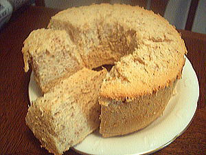 2006年の初焼きは、簡単なシフォンケーキになりました。賞味期限がギリギリになった卵がたくさんあったので・・・。シフォンは卵の消費量がスゴイもんね~。1台で4~5コぐらい使います^^今日のレシピの配合は 卵 4個 砂糖 40g サラダ油 40g オレンジジュース 40g 薄力粉 80g ベーキングパウダー 2g デス。いつもは卵黄2個、卵白4個にするけれど、今日は卵黄も4個にして余りが出ないようにしてみました。卵黄の分、水分を減らし気味にし、シットリよりフワフワシフォンを目指しました。オーブンに入れ、焼き始めて10分ほど・・・。夕食の用意と平行していたので、オーブントースターでグラタンを焼きながら、コンロの上のライトを点けた状態で、コンロの火をつけたら・・・ブレーカーが落ちました~ヽ( ̄ ̄ ̄ ̄ ̄ ̄∇ ̄ ̄ ̄ ̄ ̄ ̄;)ノ冷蔵庫・オーブン・オーブントースター・コンロ上のライトが消え、なぜか炊飯器・室内灯・流し台のライトは点いたまま。・・・どうも回路がおかしいらしい・・・。本来、冷蔵庫は別回路にしてあって、他が消えても冷蔵庫は消えないようになっているはずなのですが・・・。なーんとなく嫌なカンジ(ーー;)と思いつつ、もう一度オーブンのタイマーをセットしました。焼き上がりはまずまずでしたが、型出しを失敗してしまいましたorz到底お見せできるような代物ではありませぬ。味は・・・砂糖・オレンジジュースを控えめにしたため、味がぼやけた感じになってしまいました。パン代わりに食べるのなら大丈夫かな?久しぶりに作ると、やっぱりうまくできないものですね~。