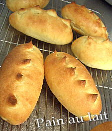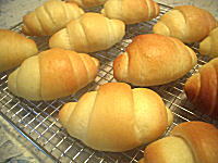 パパと長男はシンプルなパンがお好みなの。私と次男は甘いのが好き♪今日は、シンプルなパンを焼きます。でも成型はカワイク♪♪♪牛乳入りのフワフワパンが焼きあがりました。こねやすかったし、味もぐ~♪ d(* ̄o ̄)焼きたてを食べたら、ほんのり甘くて美味しかったのよ。お気に入りのレシピになりました!レシピ:『パンづくりテキスト』 パン・オ・レ