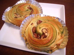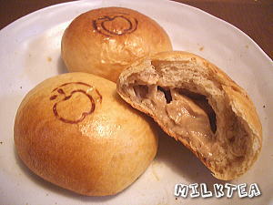 世間ではバレンタインデー、手作りチョコを作ってもあげる相手がいないので、今日もせっせとパンを焼いていました。アールグレイのミルクティーで生地をこね、ミルクティーとコンデンスミルクで作ったクリームを包み込んだ「ミルクティークルート」ABCの基礎(上級)の中盤のメニューを予習?!で作ってみました♪ うまーい!!生地もクリームもミルクティーの味と香りがしっかり生きてるし、フワフワだわ~。こりゃいいレシピだねヾ(●⌒∇⌒●)ノ クリームの作り方はかなり簡単なので、ちょくちょく出番がありそうです(。・w・。 ) それから、栗の甘露煮と金時豆を抹茶入りの生地で巻き込んだパン。ABC初級の抹茶クーヘンの生地を使いました。仕上げに抹茶アイシングで飾りつけ。味は見た目どおりで、和風パンが好きな人にはいいかな~。幼稚園のお友達ママにおすそ分け。いつもいつもお世話になってるからサ、気持ちだけ・・・。
