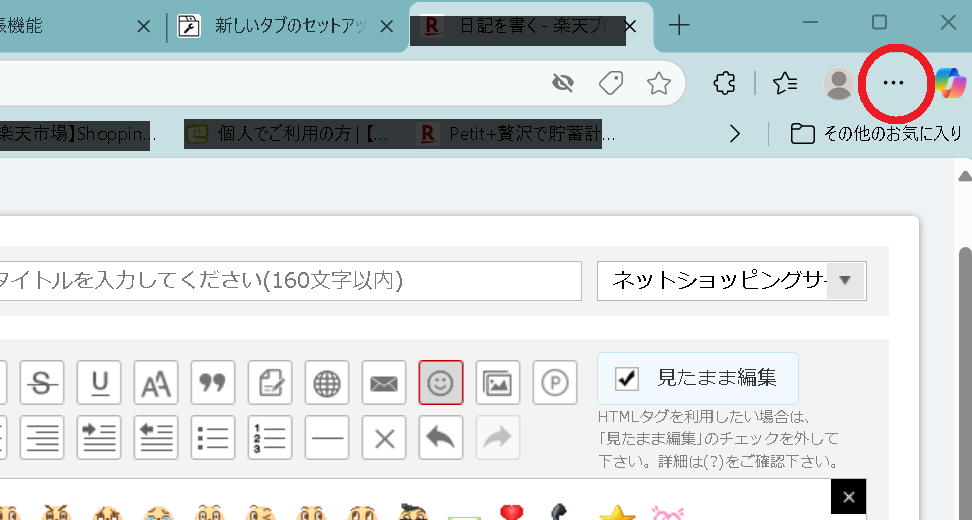 また急にPCのホームページ画面がおかしくなったもともと『Yahoo!Japan』のホームページだったけど訳の分からないホームページがずっと出てくるようになってしまったのでいろいろ検索した結果有効だった方法を記載しておこうと思うまず初歩な情報から①ホームページの設定は赤丸のところをクリック②下の方の『設定』をクリック③『スタート、ホーム、新しいタブページ』をクリック④『カスタムサイトを開く』⑤『サイトの追加』⑥※『https://www.yahoo.co.jp/』※ホームページに設定したいアドレスを入れる。、、、と、ここでホームページの設定は出来たけど新しくタブを開くと、また、変なページが開いてしまう、という現象が。。。そこで調べるとまた、最初に戻って1⃣まず赤丸のところをクリック2⃣『拡張機能』をクリック3⃣下の方にある『拡張の管理』の下の『Microsoft Edgeの拡張機能を検出する』をクリック4⃣検索窓に「custom new tab」と入力し検索5⃣『custom new tab』のインストール6⃣『拡張機能の追加』をクリックまた2⃣『拡張機能』をクリック『拡張機能の管理』をクリックして7⃣インストール済の拡張機能の『custom new tab』を有効にする。※赤丸のところを右にスライドして、青にしたら有効になる。8⃣インターネットでホームページを開き新しいタブを開くと『カスタムの新しいタブ拡張のセットアップ』と出るので関連URLに設定したいホームページアドレスを入れ『セーブ』を押す。