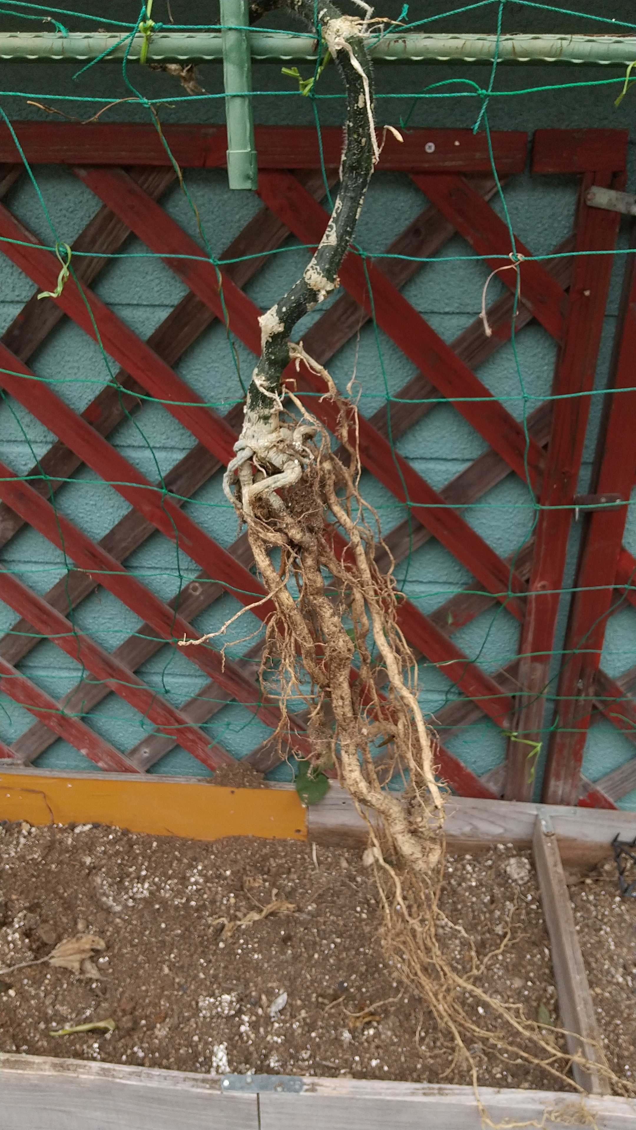 冬瓜の根っこ。20個以上も実を付けた立派な根。長くてたくましい。ありがとさん