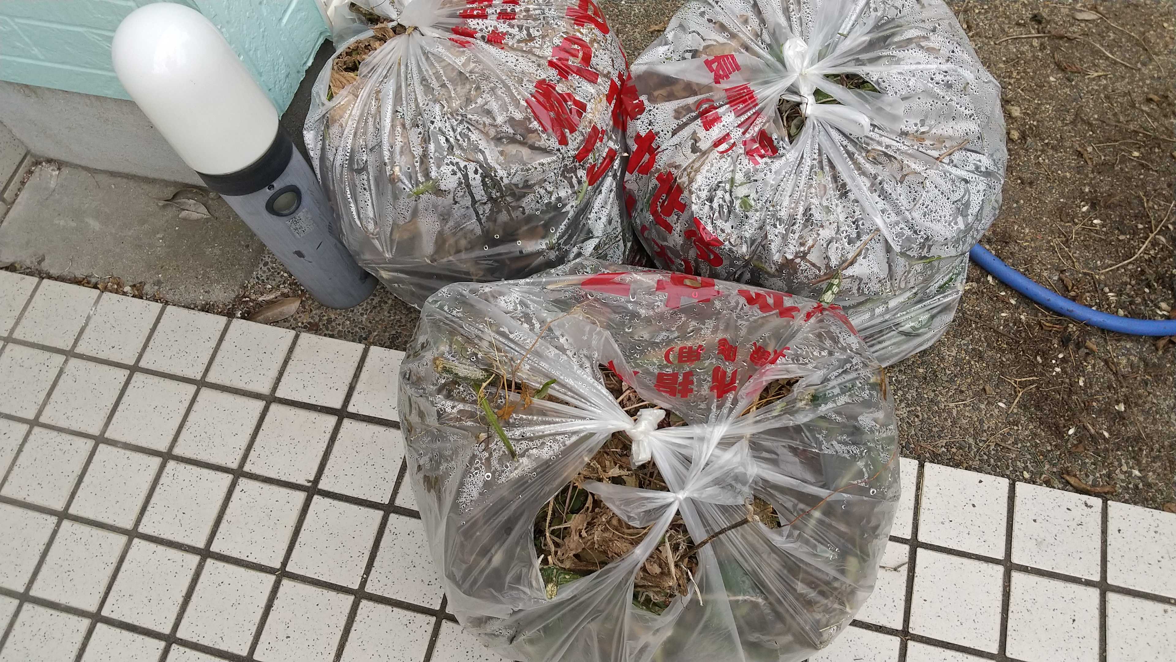 ゴミ袋 7個 大変だったけど、庭がスッキリしました。心もハレバレだ。