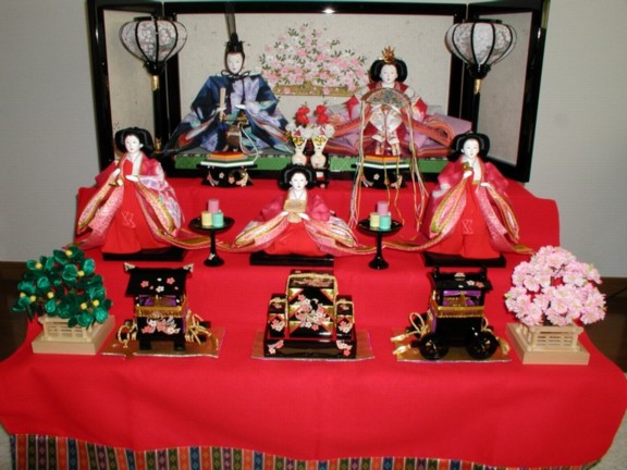先週そろそろお雛様を買いに行きたいなあ・・・と話した所会社の後輩に「もう無くなっちゃいますよ」とパパさんは言われたらしく「じゃ、見に行こう!」と話したら「買って来るんだよ」とあっさり。男の子は女親の実家から女の子は父親の実家からお祝いしてもらうと言う実家の方の風習ですが関所では何も言ってくれないし(ま、行かないからかもしれないけど)勝手に買っちゃいました・・予算は兜と同じ位。今年の流行は紫とピンク系のお雛様が売れているようです。お内裏様とお雛様の2つの飾りでいいかなあ?って思っていたけれどやっぱり3段がいいなあ・・・と思い3段飾りを買いました。色々迷いつつもわたしのわがままを通してわたし好みのを買いました。今流行りの飾り棚タイプを・・と思っていたけれど顔と着物が気に入ったのでコチラに。あえて金糸ではなく染め着物とサイズも他の3段に比べ大きかったのでいいかなあ?と。なので三人官女の着物の柄の出方も微妙に違うんです。予算もオーバーだったんだけどお勉強もしてもらい・・♪子供の頃段飾りが欲しくても買ってもらえなかったのでうちに雛人形が飾れて嬉しい!そんな時、女の子を産んでよかった!と思えるのでした(単純だけど)昨日は少し早いけれど母の命日が近いのでお墓参りに行って2月1日のアカゴのオペの無事をお祈りして来ました。一生懸命飾ったんだけど仕舞うのがなあ・・・・ハッと思い出し写真は何枚か撮ったけど大変そう・・・(汗)