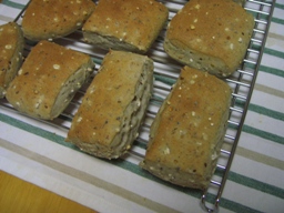 こんばんは。4日に倉敷から四日市に帰り、8日はブー太郎くん始業式、3学期開始と、冬休みが明けた途端何だか日々せわしないでスよ。ダンナさんもおいそがしで帰りも遅いのでこれまた大変。んが、先日珍しく晩ごはん時に帰って来たら、「お父さん、今日は特日課なの?」とブー太郎くんの奴に言われていましたでス……。ちなみに特日課とは特別日課、所謂短縮授業でいつもより早く帰れる日の事でございまス……。お父さんの立場って一体……ダンナさんでス……さて、日々時間に追われているのでスが、ようやくパンを焼く時間を確保したので、2009年初焼きと言う事で焼きましたよう1次発酵がいらない米粉を使い、米つながりで雑穀ミックスを加え、四角く伸ばしてスケッパーで9等分して焼いたのが、こちらの雑穀スクエアでございまス食べる前にレンジで30秒ほど加熱するとふんわりしっとり美味しくいただけまス(〃^人^〃)ちなみにコレはポテトサラダを挟んでサンドイッチにしちゃいましたとっても美味でしたようヽ( ´∀`)人(´∀` )ノちょっとでも時間を作ってパンを焼く、ちょっとしたストレス解消にまりまス。今ゆっくり発酵で牛乳パンを仕込んでいて、これは明日の朝焼こうと思ってマス。