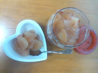 こんばんは。約2週間ぶりでございまス。その間本棚や下駄箱などが着々と届いて、それらをダンナさんに組み立ててもらって、コツコツとお片付け&整理整頓していましたよう。魔窟になっていた部屋もようやく片付いて、後は引越屋さんにダンボールを回収してもらうばかりとなりました。もうちょっと改良の余地ありと思う収納でスが、少しずつ快適な空間を作ってゆこうと思っていまス……あこ茶でス。片付けがなかなか終わらないのと日々の事で、何となく疲れが抜けない今日この頃。ブー太郎くんに熱望されているのだけれど、なかなかパンやお菓子を焼くのに辿り着けません……(泣)。なのでここ数日パンは専らホームベーカリーで焼きっぱなしでス。せめてもと言うのと、お試しでジャムを作りましたよう。オレンジページにパルスイートのレシピ付き広告が載っていて、それを参考にしました(^^)bりんごジャムは、ごろごろと形が残っている方が好きなのでス。パンにもヨーグルトにも合うし、そのまま食べても美味しい。ちょっとお勧めでス明日は資源ゴミをまとめなきゃなあとか、(エレベーターがあるとは言え量が結構あるので運ぶのが大変)明後日と明々後日は旗当番だとか、(中学男子を見かけると未だトラウマが蘇るから)来月はフリー参観だとか、(免除されるとは言えPTAの学級委員選出もあるから)何かモウ色々鬱々してしまうのだけれど、なんとか乗り切りたいと思いまス……あこ茶でス。┐(-。-;)┌ 本日のトーテムポール ┐(-。-;)┌ブー太郎くんがダンナさんの間におさまっていたら、チビ太郎くんが割り込んでこの形に……。ちょっち愉快だったのでぱちり☆