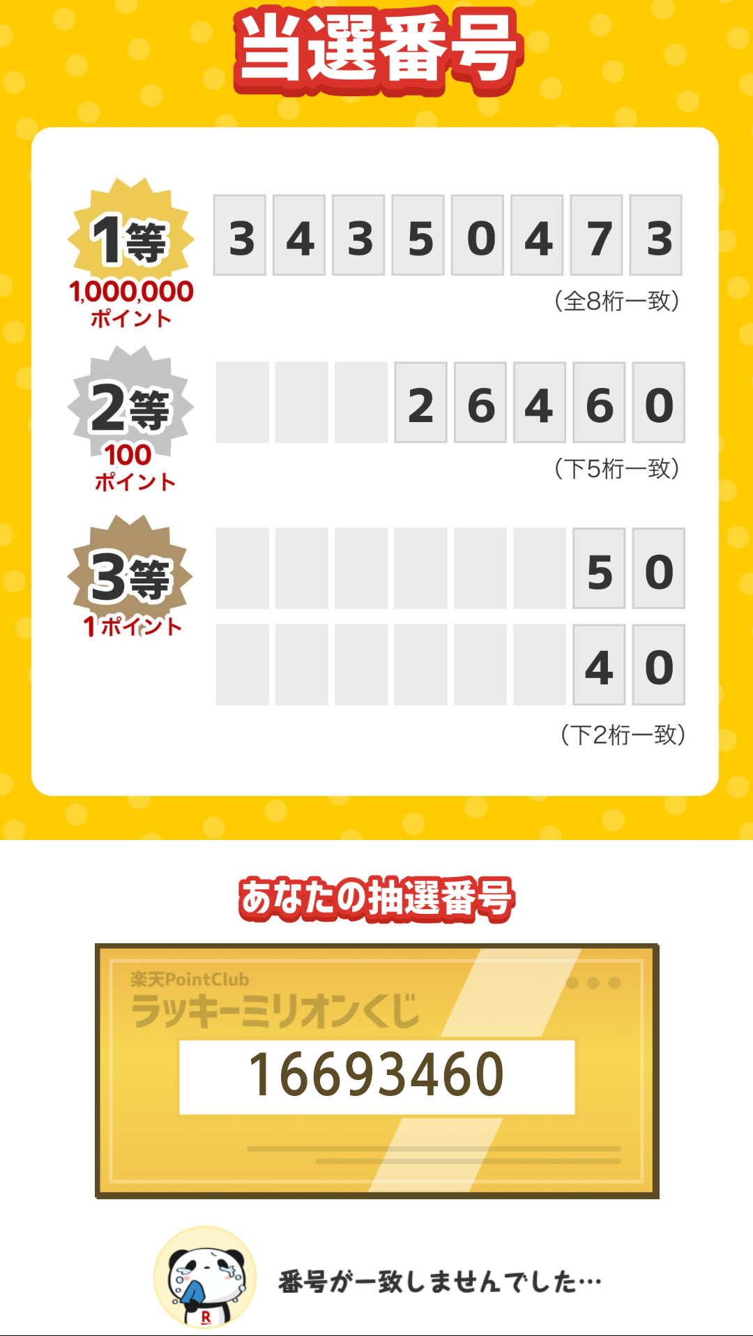 楽天PointClub【ラッキーミリオンくじ2025… 2025.06.04