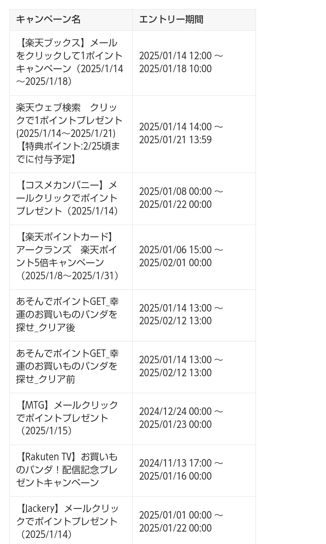 楽天ウェブ検索 クリックで1ポイントプレゼント(2025/1/14~2025/1/21)