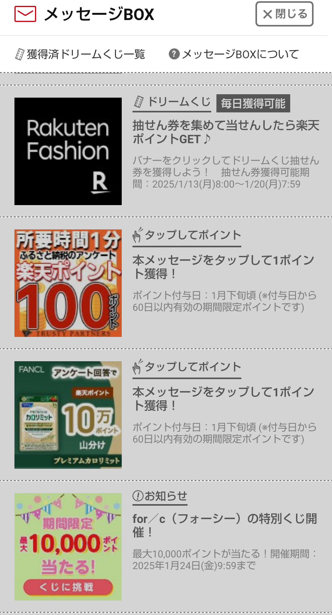 💌 クリックするだけで1ポイント【2025年01月18日(土)~2025年01月24日(金)】