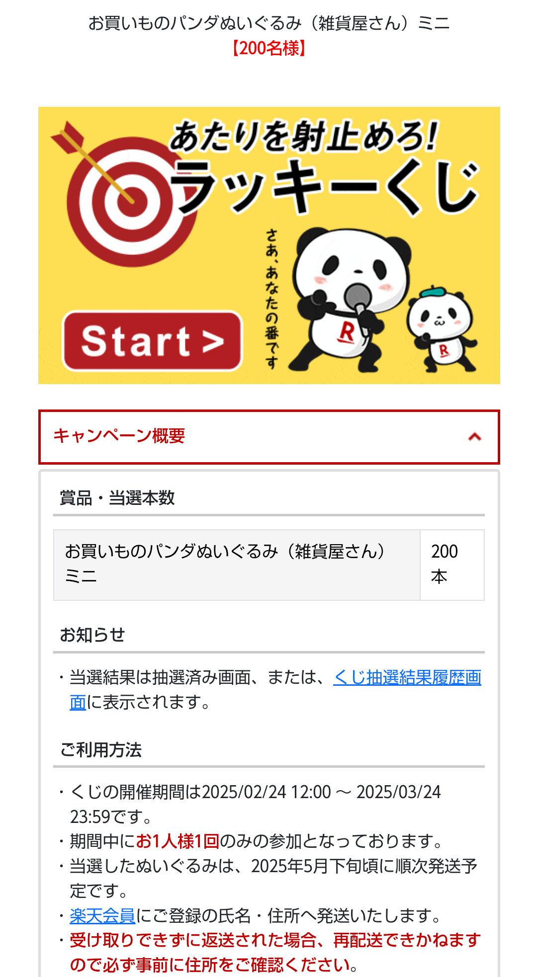 「お買いものパンダぬいぐるみ(雑貨屋さん)ミニ」が当たる!ラッキーくじ