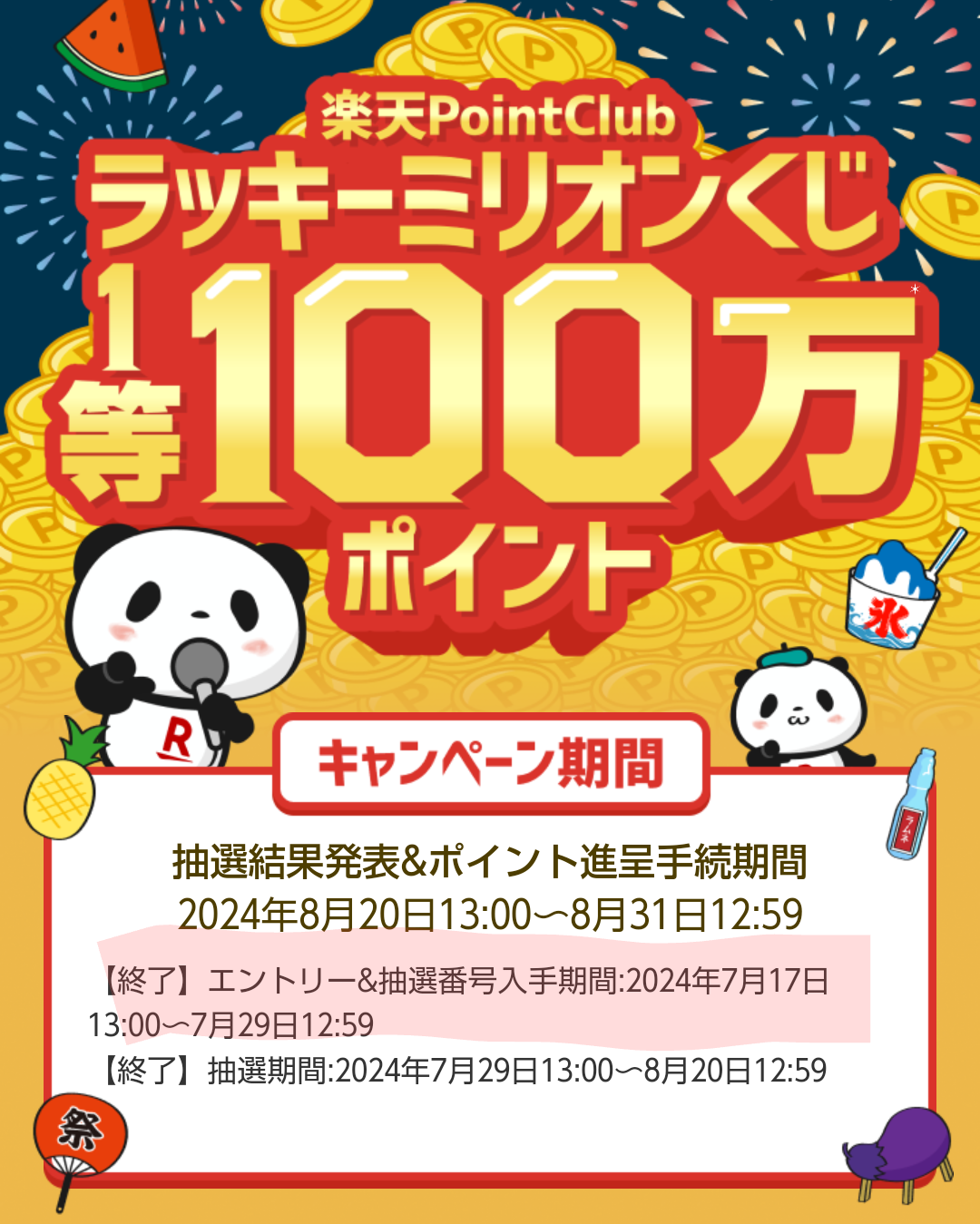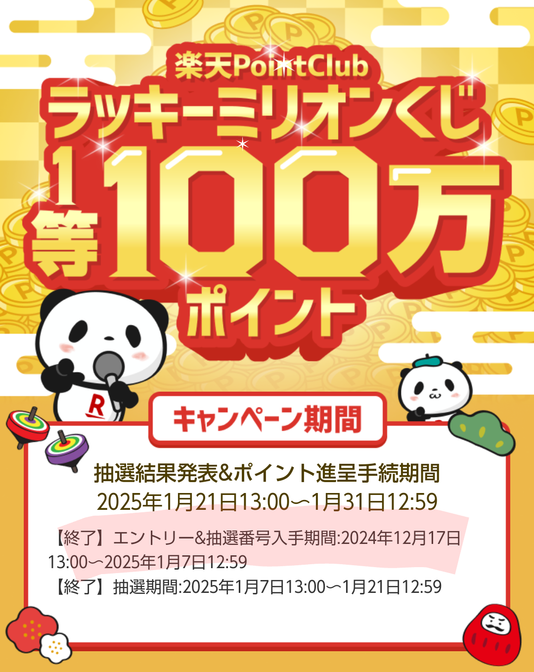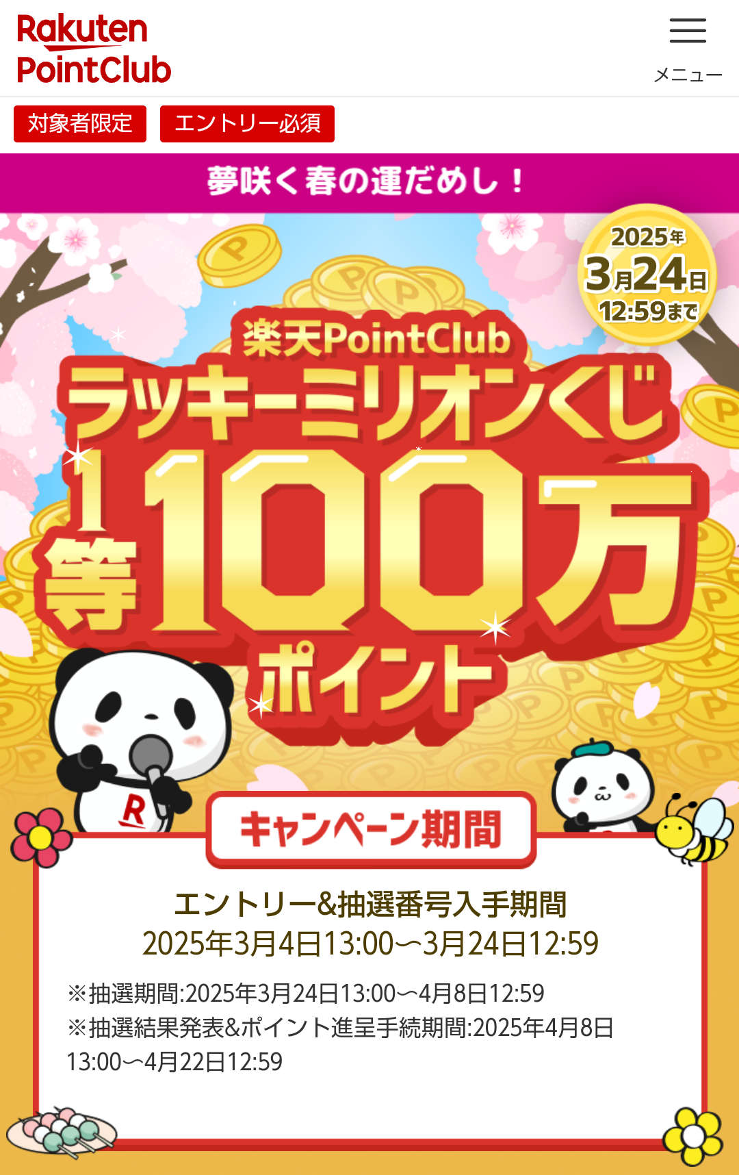 楽天PointClub【ラッキーミリオンくじ2025… 2025.06.04