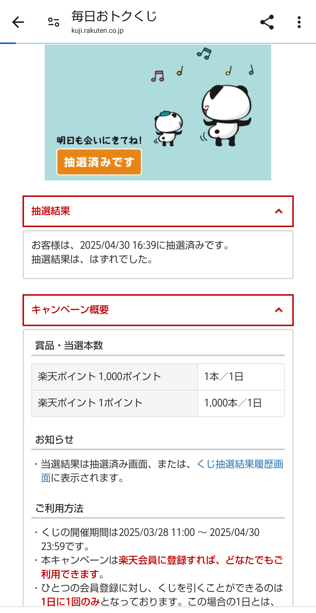 毎日おトクくじ 1日1回引ける!最大1,000ポイントのチャンス 今すぐチャレンジ 毎日おトクくじ