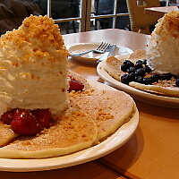 先日ママの誕生日で横浜まで行って来ました。久し振りに中華街でお粥を食べて、山下公園通り沿いのEggs 'n Thingsへ…。僕はここは初めてだったので、とても楽しみにしていました。カヨからずっとお話を聞いていたのですが、実物を見てホントにビックリ!でも見た目より全然サッパリしていて、余裕で食べちゃいました(笑)。また近いうちに来よう。並んで食べた甲斐がありました。ここ、かなりお勧めです。天気が良かったらディズニーシーに行く予定だったのですが、まぁ、それは来月にということで…。●