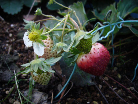 昨日の日記”手作りいちごロールケーキ”を紹介したばっかりなところに、タイムリーにも、今朝、母上が、”屋上にあるいちごの鉢にいちごが1個赤くなっているよ”と”いちご”と言えば、抹茶的には、まだカナダ感覚なので、”いちご=夏、ストロベリーピッキング”なので、この冬にいちごが生るっていうのは、イマイチ・・・夕方、洗濯を取り込む時に、自分の目で確かめて来ました さぁ、いちごちゃん、どうでしょうほらほら、真っ赤ないちごちゃんが、1個生っているでしょうでもって、花が、今時、咲いている・・・っていうのが、抹茶には、変なんですけど・・・まっ、いいか去年だったか、確か1個しか出来なかったけど、今年は、もう2,3個出来そうですね暖かい日が続けば、赤くなるのかな・・・ カナダで住んでいたでは、あんまりが当たらないバルコニーしかなかったから、何も育てることが出来なかったけど、日本のなら、何か作れそうです・・・果物か野菜を育てたいなー プランターで育てられる!野菜苗 ジャンボ玉ねぎ 9センチ×2ポットサントリー「本気野菜」イタリアン・トマト苗「ルビーノ」1個専用プランターと野菜肥料オシャレ...失敗してもやり直せる!お手軽家庭菜園スタート♪野菜や果物の栽培缶!「トライ」 5缶セット甘味が強く1本でも実がなる優良品種【フェスティバル花1128×5】●果樹苗【キウイ苗木】香緑(...糖度が高い。丈夫で育てやすい。 【フェスティバル花1128×5】●果樹苗【柑橘類苗木】日南早生...