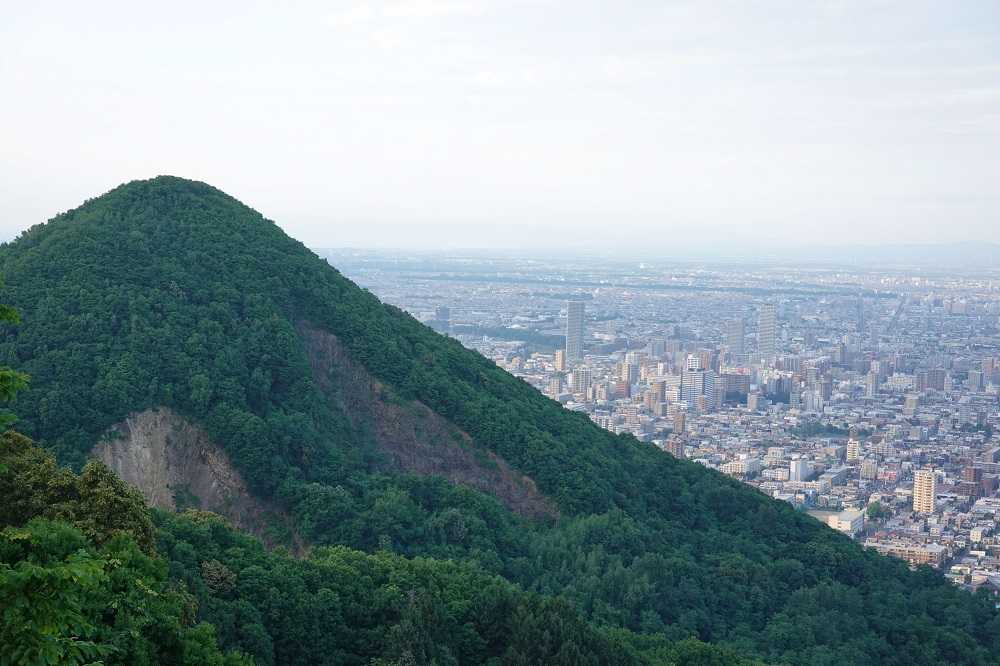 三角山の背後に広がる札幌のまちなみ