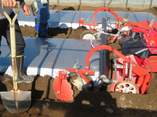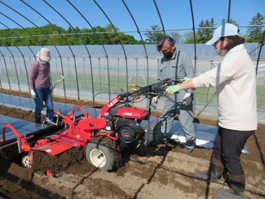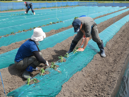 今回は「さつまいも」定植実習とハウスのマルチ張り実習の様子をお届け!