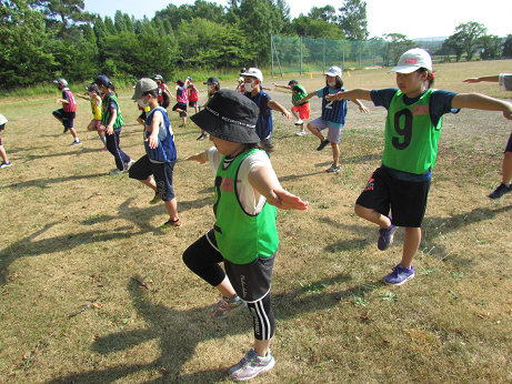2日目も朝からグラウンドへ出て、様々な種類の鬼ごっこやしっぽ取りで体を動かし、最後