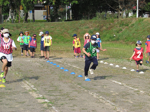 陣取りゲームやラダーリレーなど、遊び要素を取り入れた練習メニューの工夫により、子ど