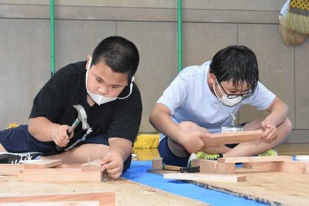 ​ネイパルに戻ってからは「 My椅子作り 」を行いました。近隣の林から切り出された道南杉の間伐材を組み立て、3時間もの長い間、金づちを使い、丁寧に椅子を作りました。ある子どもは「苦労して作ったいすに座れてうれしかった」と感想を話していました。​