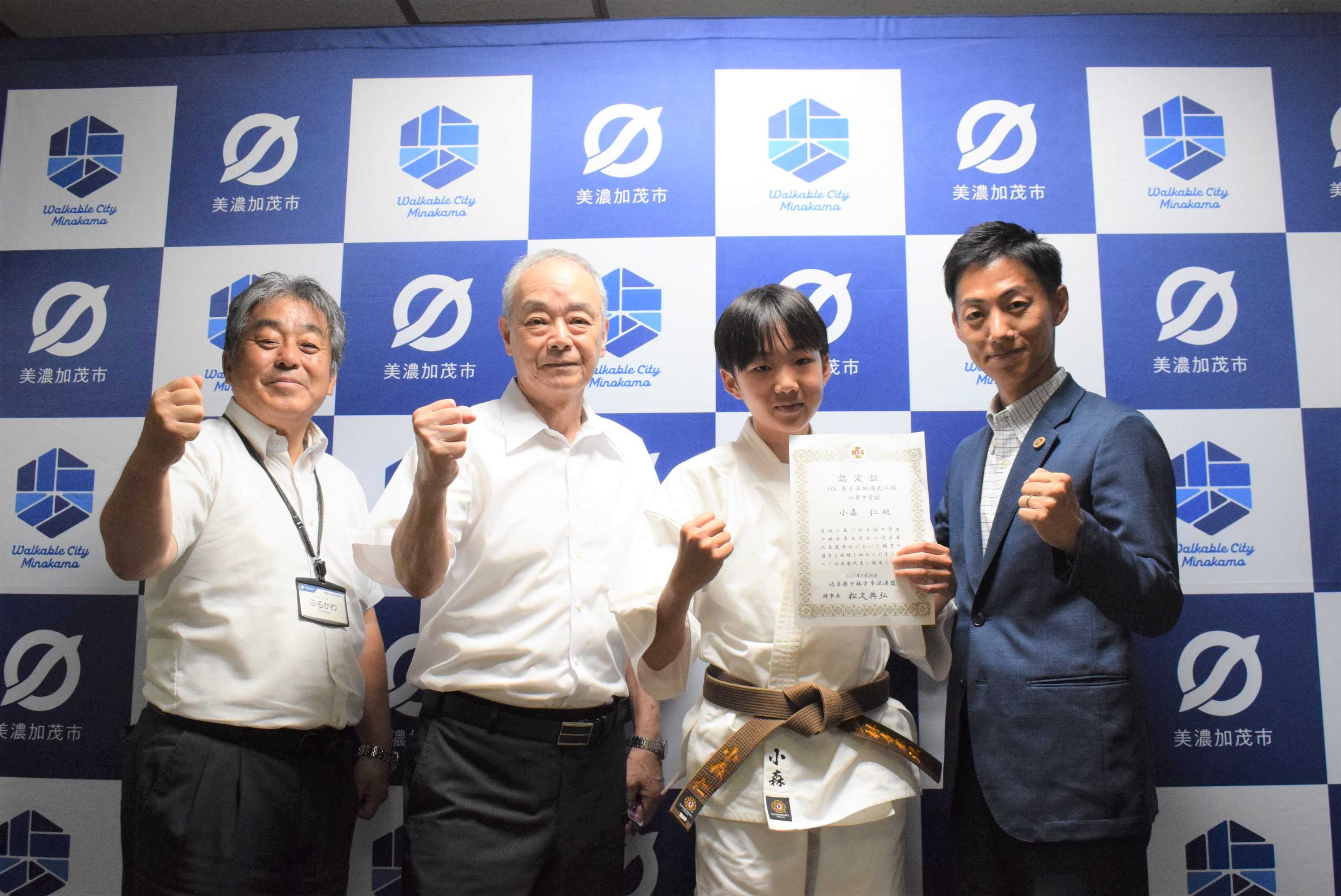 7月16日、美濃加茂市公室に、 「少林寺拳法美濃関道院」で活動している、双葉中学校2年生の小森仁(こもりじん)さんが、全国大会に出場することを報告するために、美濃加茂 市長を表敬訪問されました。