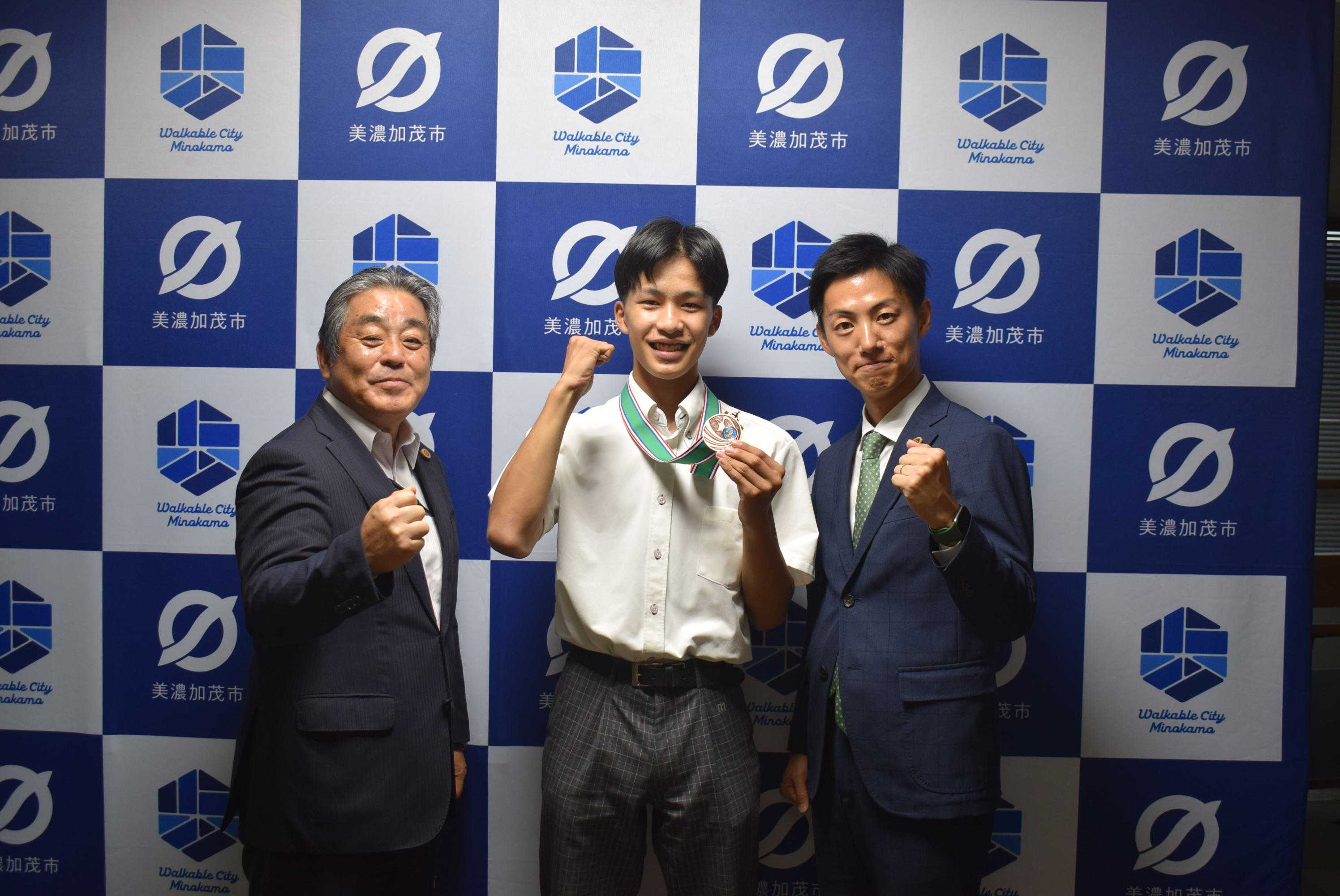 10月17日、美濃加茂市公室に、美濃加茂中学校3 年生の渡邉稜平(わたなべりょうへい)さんが、全国大会において第3位を獲得したことを報告するために、美濃加茂 市長を表敬訪問されました。