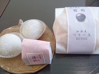 みなさん、こんにちはそろそろぶどうの時期も終わりですね先日、菓遊館にいってきましたすると加西のぶどうを使った和菓子がたくさんありましたので、報告しますねまずは、加西特産ピオーネを使用した「ピオーネの恋」(写真左上)新鮮なピオーネをやわらかいお餅で一粒一粒ていねいに包み込んだ季節限定の和菓子。食べるとぶどうの果汁がじゅわぁと出てきます。おいしいです次は、加西特産ゴールデンベリーAを使用した「蒲桃(ほとう)」(写真左下)ひょうご安心ブランドのゴールデンベリーAのさわやかな風味が堪能できる一口羊羹ですそして最後に、ゴールデンベリーAをジャムにして挟んだ「葡萄ベリーAブッセ」(写真右)これは年間を通して食べられるそうなので、加西の新しい手土産としていかがでしょうか加西の特産ぶどうを使った和菓子。季節限定が多いので、是非今の内にご賞味ください菓遊館 加西市北条町北条367-10790-43-0725