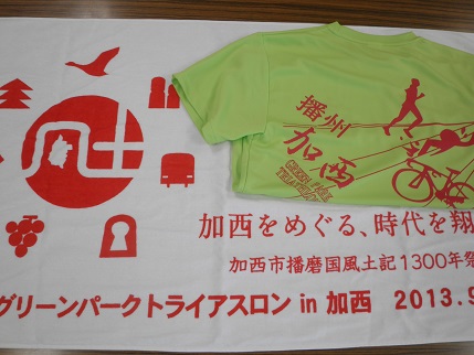 みなさん、こんにちは今日はトライアスロンの準備に東奔西走の事務局ですいよいよ明日、いこいの村はりまにて開会式と前夜祭日曜日は、ぜんぼうグリーンパークで競技、表彰式となります競技スタートは、8:55からです観客の方は、JA善防支店に駐車していただき、徒歩で善防公民館までお越しください。一位は11時すぎに到着予定ですオリンピック競技のトライアスロンと同距離のこの大会を是非一度見に来てくださいねそして、写真は、選手、スタッフ用のTシャツ。裏面は北条高校の生徒さんにデザインしてもらいましたフィニッシャータオルは風土記のロゴを使用。みんな感想目指してがんばってもらいましょう