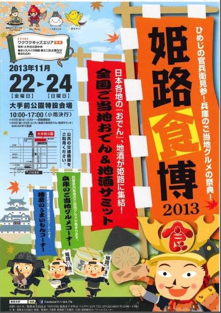 みなさん、こんにちはさて、食欲の秋。今週末情報いってみましょう恒例になってきました「姫路食博」が明日から行われます11月22日(金)13:00~24日(日)17:00場所:大手前公園特設会場今年は兵庫県のご当地グルメのほか、日本各地のおでん&地酒サミット、子ども向けのわくわくキッズエリアも登場加西市からは土日に「加西へらへとバーガー」を出店します是非、食べにきてくださいね。ちなみにおすすめは、ここだけの話、「静岡おでん」です