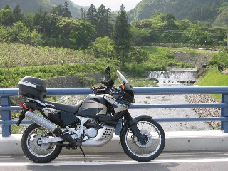 ネタに困ったときは昔のバイクシリーズHONDA アフリカツイン 国内最終モデルこれが新車であるうちに、と思い立ち、大型免許を取りました。学生のころからの憧れのバイク。トランザルプやバラデロは、型番がXLV、これはXRV。いわゆる、アルプスローダー的なXL-Vシリーズに対して、これはオフ車。BMWでいうと、F650GSとダカールの関係のようなもんでしょうか。実際、パリダカ優勝車NXRのレプリカで、これでラリーに出てる人もいますし。とはいえ、ツーリングバイクとしても優秀で、大型初心者でものんびりまったり乗ることもでき。名前も最高。だって「アフリカツイン」ですよ。いいバイクですが、もう生産中止。2つ前の日記にあるように、Deauvilleの2006年モデルは、エンジンが680ccになり、型番もNTV700になりました。同じエンジン使って、XL700V Transalpとか出ないかな。で、バリエーションとして、XRV700 Africatwinとか出ないかな。そして、写真はなんだかツーリング先の山奥に見えて、実は家からそう遠くない道端。