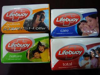 以前は、食料品・日用雑貨などの買い物は、ほとんど使用人にまかせていましたが、ある事情があって、今は私自身ですべて行っています。そんなある日、使用人から石鹸を買ってほしいと言われました。何に使うのかとたずねると、床拭きをした雑巾を洗うために必要、との答えでした。銘柄も指定されました。「ライフボーイ」と聞こえたので、私の頭の中にはすぐさま、life boyというスペルが浮かびました。なんで boy なのかな?男の子は泥んこになって遊ぶから、ばい菌をすぐ退治して生命を守るという意味で、この名前がつけられたのかも、なんて漠然と想像しながら買いにいきました。スーパーマーケットの棚には、品質や値段が様々な石鹸がたくさん並んでいます。でも、すぐに見つけることができました。ほら、あったでしょう?しかも、左上の黄色いパッケージで黒いマスクをつけて写っているのは、私の大好きなインド人俳優 Hrithik Roshan(リティク・ローシャン) です!でも、石鹸の名前をよく見ると、うん? なんか変…。life boy ではなくて Lifebuoy と書かれているではありませんか。buoy って何? ヒンディー英語なのかしら?などと首をかしげて帰宅し、さっそく英和辞典で調べました。そこには、life buoy : 救命用浮き袋、救命ブイと書かれていました。ふ~ん、救命ブイか…って、なぜ? どうして石鹸の名前が救命ブイなの??答えはこの写真をご覧下さい。合成着色料が思いっきり使われています!と、いわんばかりの目立つ色。まさに、海でもはっきりと見えるブイの色そっくりなんですよね。それにしても、この石鹸で毎日手を洗ったら、指紋が消えてなくなりそうで怖いんですけど…。