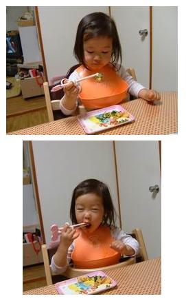 ちゃんとウインナーをはさんで、食べることが出来ました。
