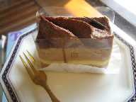 またまた曙橋に用事があって、「ラ・ヴィ・ドゥース」に久々におじゃましました。イートインスペースでいただいたものは・・・かわいい形ですね。チーズケーキ。ケーキ屋では、モンブラン、チョコケーキに並ぶ3大大好きケーキです。どちらかというと、ベイクドタイプの方が好きですが、これは、レアタイプです。割ると、こんな感じ。おいしそうですねえ~。味は、ちょっとやさしすぎたかな。ガツン系、濃厚系が好きな私にはちょっともの足りず。ふわふわクリームにふわふわスポンジです。確か450円くらい・・・