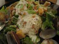 アミューズのレバーです。ちょっと苦手な食材ですが、おいしかったです。前菜の一つ目は、魚貝のグリルのサラダ仕立て。ほたて、いか、鯛のグリルがたっぷりで、メインでもいいくらいでした。もう一つの前菜は、きのことサルシッチャ(ソーセージ)の暖かいサラダ。この下にりっぱなソーセージ、というかハンバーグのようなりっぱなものが隠れてます。これこそメインでした。そして、パスタ。じゃがいもと天使海老のリングイネ、バジルソース。これは、好きな味でした。じゃがいもも海老も、リングイネの固さもちょうどよく、バジルソースも絶妙です。そして、ボロネーゼ。上の白いものは、キャベツです。ボロネーゼの味が強いので、このキャベツを一緒に食べるとちょうどよいのです。そして、デザートのパンナコッタです。パンナコッタももちろんおいしかったですが、黒糖のキャラメルアイスもこくがあって上品な甘さです。生ビール、スプマンテ、白ワイン1杯ずつ、コーヒーとエスプレッソで、二人で11380円。今日もおいしかったです。