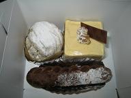 右はマロンのケーキ。ほんのり洋酒でクリームにも生地にもマロンがたっぷり、これは好きな味です。左はチョコとピスタチオのムースです。濃厚でねっとり、これもおいしいですね。