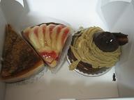 実は腰痛になってしまって、外出もままならず、近くのおでかけでがまんです。せっかくの3連休なのに。でもお天気はいまいちですね。近くにおいしいケーキ屋はいろいろできたけど、やっぱり「リュードパッシー」が一番好きかもです。今日は3つ。モンブランとくるみのケーキとチョコエクレア。くるみのケーキはお初でしたが、これまたおいしかったです! クリームの上品な甘さもカステラのちょっとしっかりした固さもいいですねえ。