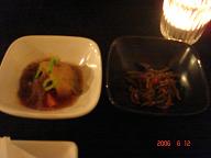 お茶に行って予約して、「青家」に行きました。怖いのは、メニューにまったく値段が書いていないこと。飲み物はあるんですが・・・ なぜなんでしょうか。 お通しの「肉じゃが」と「きんぴら」。何気ないですが、下味がしっかりついていて、味が濃くないのに、しみじみおいしい。さすがです。これは期待できそう。 じゃがいものゴルゴンゾーラソース。おいもがほっくほく。塩のきいたソースとよくあいます。 生麩のゆばまんじゅう。むっっちりした生麩のまんじゅうに湯葉とあんがかかって、出汁がいい味です。生麩となすとオクラの素揚げ。ちょっと似た感じですが、これもおいしい。 夏野菜の塩蒸し。おかまの中で、色とりどりの野菜がシンプルにお塩だけで蒸されてますが、本当に甘みがあっておいしゅうございます。 牛テール煮込み。もう、トロットロに煮込まれていて、味付けもちょっと甘めで、たまりません。 豆ご飯と鮭ハラスのお茶漬けセット。ご飯が本当においしいです。お豆の塩味がほんのちょっとあって、いくらでもいけそうです。 デザートの抹茶ゼリー。 このかわいい容器に入っているのは、あんみつです。お酒を3杯飲んで、麩饅頭をおみやげに5つ頼んで、2人で12600円。どきどきのお会計でしたが、まあまあ納得でした。ここは会員制ということですが、お茶かお昼にいけば大丈夫のようです。