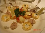 とあるパーティの準備をお手伝い。おいしそうなお料理がたくさん・・・ えびのグリルとヒヨコマメのコロッケ。えびにはココナッツミルクやナムプラー、コロッケには、コリアンダーやクミンで味付けしてあり、中近東の味だそうです。 なすのペーストとトマトのペースト。ナスはヨーグルトとあわせてあり、トマトには生野菜がたっぷり。トルコ風だそうです・・・こんなにおいしそうなのに、お手伝いだけですから、まったく食べてません!(泣)ほかにはクスクスなどもあり。 お花もこんなにおしゃれでした。