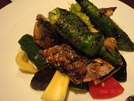 久々の「マダム・キコ」におじゃましたら、なんと、前も偶然会った友達夫婦にまたばったり。レストランが3件くらいしかない地方じゃあるまいし、気があうというかなんというか・・・ さんま網焼きと豚足コロッケ。さんまの下には、水ナス、トマト、きゅうり、セロリ、などなど大振りな野菜がごろごろ。さっぱりしていいです。豚足コロッケは、食べやすく切ってあります。コクがあって、これもおいし。 フォアグラのソテーは、りんごの角切りとあわせてあります。甘みがばっちりです。今日のおすすめパスタのホタテとオクラのバジルスパゲティ。ここはバジル味がおいしい。具がたくさん入って、おしゃれではないけど安心できる味です。 この間もいただいたバナナパイ。パイがサックサクです。ヌガーグラッセとアップルティープリンは初めていただきましたが、どっちもおいしい。特にヌガーグラッセは、あっさりバニラアイスに中身がざくざく。これはまた食べたいかも。ビール2杯にブラッドオレンジジュースなど飲んで、2人で10000円ちょっとです。