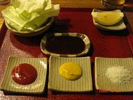 今日は、ジモティーの友達に、渋谷のラブホ街の中の串揚げ屋さんに連れて行ってもらいました。気をつけないと誤解されそうな、ラブホだらけの街の中に「串徳」はあります。串揚げ屋さんとは全部このシステム? と思うほどですが、どんどん出てきて、ストップをかけるまでの串の数でお会計。でも、次は何? という楽しみがありますね。 最初のセッティング。きゃべつとたれと、あさつき、きゅうり、にんじん、時々の箸休めですね。それでは、一挙にいきます。 しそえび、牛肉、ぎんなん、なすとひき肉、かき、かにつめ、トマトとベーコン、?、ぶどう、えび、いかのうにソース、うずらの卵、以上12本食べました。おいしかった! 特に「トマトとベーコン」と「ぶどう!」は、意外なおいしさ。甘くてジューシーなほうがおいしいんですね。もうちょっと食べられたらなあ・・・ こんなに食べて、お酒もけっこう飲んで5000円。たまにはいいですね。星は4つ☆☆☆☆。