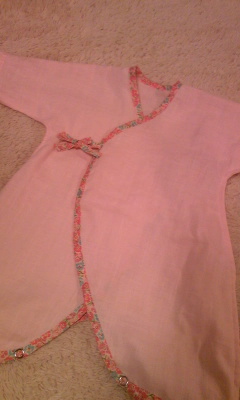 皆さんのGWはどんなGWでしたか~?我が家は私の妹の結婚式があったこともあり、遠出というよりは基本、のんびり~と近場で(笑)買い物に出かけたり、近くの海に行って息子と砂遊びをしたり・・・・・・とのんびり~と言いながらも毎日どこかしらへ出かけていて妊婦な私には結局少々ハードな日々となってしまいましたでも、結婚式はとってもいい式でやんちゃな息子を追いかけながらも(!)終始感動していましたさてさて、そんなGWがはじまる直前に行った産婦人科の健診でやっとベビちゃんの性別を教えてもらうことができました。結果は・・・姫今回はできたら女の子がいいなぁ~なんて思っていたのでと~ってもうれしいですそして早速、ベビちゃんのものをチクチク息子では味わえなかったピンク&花柄を早速使いまくり(笑)今回Upするのはコンビ肌着です。 生地は前からちょくちょく出てくる手芸と生地の店 いすずさんのダブルガーゼ。 ベビーピンク色ですで、バイピングにリバティのバイアステープを使ってみました。 こちらはオカダヤオンラインショップさんで購入。ベビちゃん用なので、縫い代とかが極力出ないように折り伏せ縫いで作りました他にもスタイとかいろいろ作り始めてるんですがまたそれは後日Upしますね。明日はまた健診です。明日の健診で「やっぱり男の子でした~」なんて言われたらどうしよう(笑)それはそれでいいんだけど・・・ピンクもの、たくさん発注しちゃったぞ・・・ ランキングに参加しています。よろしければポチっと応援お願いします! にほんブログ村