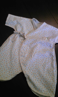 またまた、コンビ肌着を作りました~ 今回も生地はダブルガーゼで白地に小花柄がかわいいバイピングに使ったバイアスもガーゼ生地なので、赤ちゃんに優しい仕様になってます写真では見えにくいと思いますが、左胸のところにワンポイントとしてお花のモチーフ前に作ったコンビ肌着より、少しだけ袖を短くしてみました夏生まれだしねセレモニードレスの代わりになるようなベビードレスを作ろうと思って今日生地を注文しましたいかにも!って感じにレース生地とかシルク生地とかにしてもよかったんだけどそれだとほんとに着る機会が少ないし夏には暑くて着にくいかなぁと思ったのでベビードレスもダブルガーゼで作ることにしました今度赤ちゃんが生まれるときには絶対使ってみたかった伊藤尚美さんのnaniIROの生地届くのが楽しみだ~ ランキングに参加しています。ポチっと応援お願いします! にほんブログ村