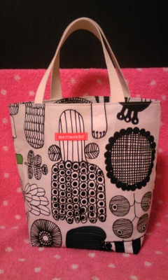 マリメッコの生地、PUUTARHURIN PARHAAT(プータルフリン・パルハート)を使ってバッグを作りました。 最近よく見かける、ハーフカットのお試しサイズのはぎれをほぼ使い切る感じで作れました。で、マリメッコのお店でもらえるギフト用の赤いリボンをタグ風につけてみました中は緑のコットン無地。 最初はもっとミニサイズのものを作ろうかと思ったのですが生地を有効に使いたかったので(笑)中サイズのバッグに仕上がりましたけっこうたくさん荷物が入るので役に立ちそうです ランキングに参加しています。よろしければポチっと応援お願いします!にほんブログ村