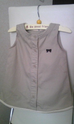 着なくなった私のワンピを娘のワンピにリメイクしてみました リメイク前の写真を撮り忘れたのでどうリメイクしたのか、すごくわかりづらいんですが元はノーカラーのシンプルなワンピの上半身部分を利用して前中心のボタン部分などはそのまま使ったのでとってもラクにできましたで、裾にリネンテープ&左胸にRickRackのフロッキープリントでアクセントづけしてみましたあ、型紙は毎度のことながら適当に・・・(笑)早速、娘に着せてみました~ こういうシンプルなワンピは重宝しそうです ランキングに参加しています。よろしければポチっと応援お願いします! にほんブログ村