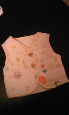 ここ数日、急に寒くなったので着るものも急に冬仕様になりました。それでちょっと肌寒いときに着れるおうちベストがほしいなぁと娘用に作ってみました。 伊藤尚美さんのnaniIRO2010のFuccraのキルトですナニイロのキルトはガーゼで肌触りもよく、ふっくらしてるので大好きです先日、この生地を買ったらちょうど反物の終わりで20センチほどおまけでくれたのでとってもラッキーでしたまだまだいっぱいあるから何作ろう話は戻って、ベストのボタンはくまの形をした木のボタンでかわいくしてみました。 めちゃめちゃパジャマ用のカバーオールにですが・・・着せてみました ランキングに参加しています。よろしければポチっと応援お願いします! にほんブログ村