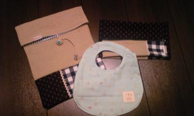 大学時代の友人が、先日男の子を出産したのでほんの気持ち程度ですがお祝いを贈りました。 スタイ、おしりふきポーチ、着替え入れポーチのセットです。スタイはリバーシブルで使えて、片面にはベビーちゃんのお名前入り。 おしりふきポーチと着替え入れポーチは同じ生地を使っておそろいに。ベビ連れのお出かけに使ってもらえたらなぁと思って。住まいが遠く離れてるのでなかなか会えず、このお祝いも送らせてもらったのですが友人はとっても喜んでくれたようでスタイを早速付けたベビちゃんの写メを送ってくれました。今年はなぜか周りの友人が女の子ばかり出産していて最近は女の子のものばかり作っていたので久しぶりに男の子のものを作れて楽しかったなぁー。 ランキングに参加しています。ポチっと応援お願いします! にほんブログ村