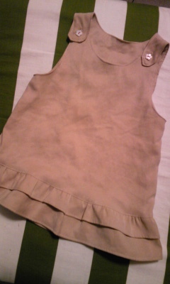 これも去年に作ってUpしきれなかったモノですが・・・娘用にまたいつものパターンでワンピを作りました。 今回は裾を二段フリルにして肩のボタンを花型の貝殻ボタンにしてみましたなぜこの色で作ったかというと・・・これに合わせて着たいロンパースがあったからです 先日お祝いでいただいたマリメッコのロンパースかなり派手な色柄なのでこれに合わせる服がなくて困っていたのです・・・シンプルなベージュなら合うかなぁと思い作ってみましたが、どうでしょうか??デニムとかも合うと思うんだけど赤ちゃんにゴワゴワのデニムはちょっとまだかわいそうかなぁと・・・。あ、そういえばこのベージュの生地。だいぶ前に自分用に作ったシンプルワンピの生地の残りを使ったので、ひそかにおそろいです今度、おそろいで着てみよ~っと ランキングに参加しています。ポチっと応援お願いします! にほんブログ村